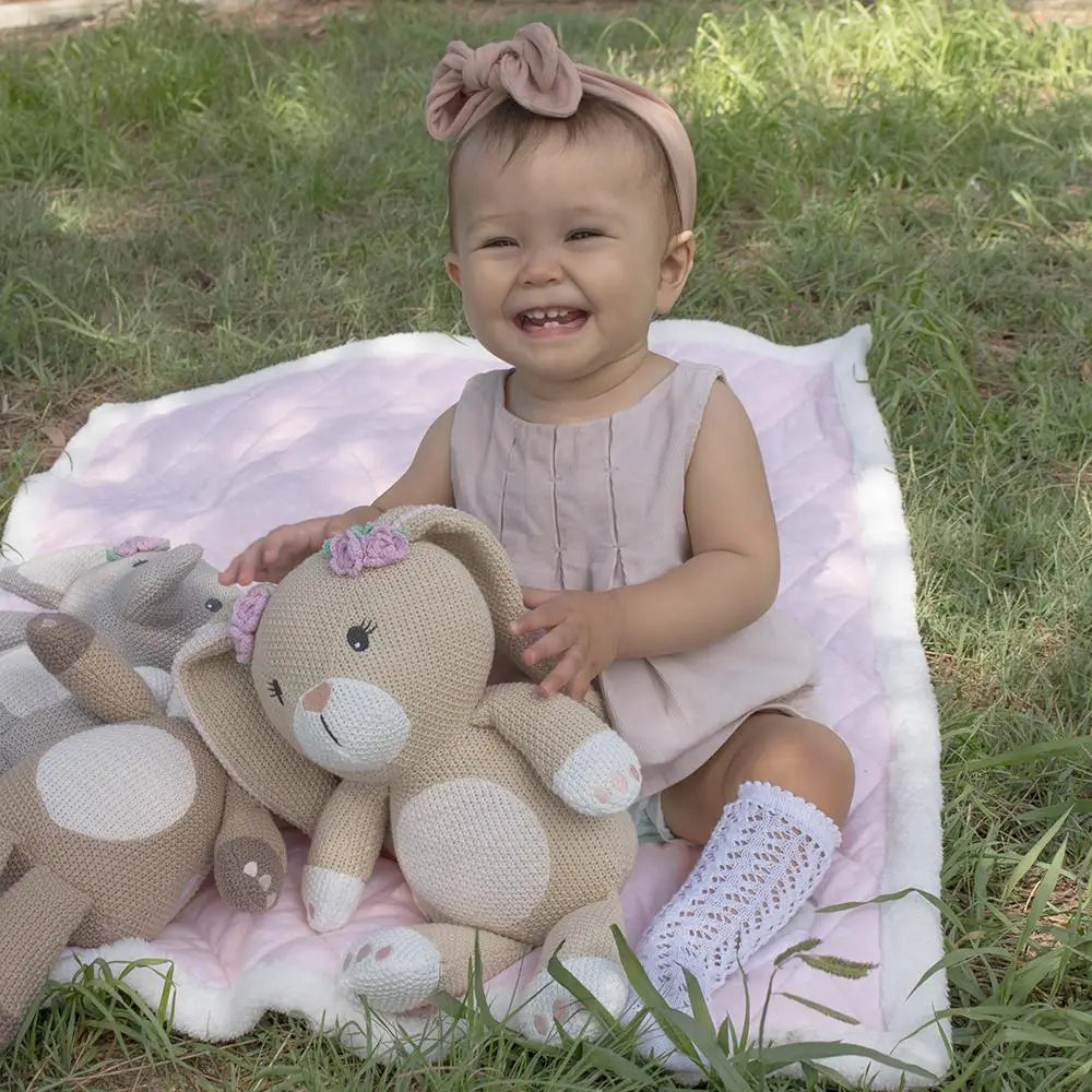 Our sweet Belle Bunny knitted toy is guaranteed to put a smile on your little one’s face! Our newest line of knitted toys is part of our Whimsical collection, which is inspired from charming children’s illustrations. Crafted from 100% high quality cotton, the Belle Bunny knitted toy is ultra-soft and fluffy and perfect for play time or cuddle time. The toy also features sweet droopy ears and knitted flowers to complete the look!