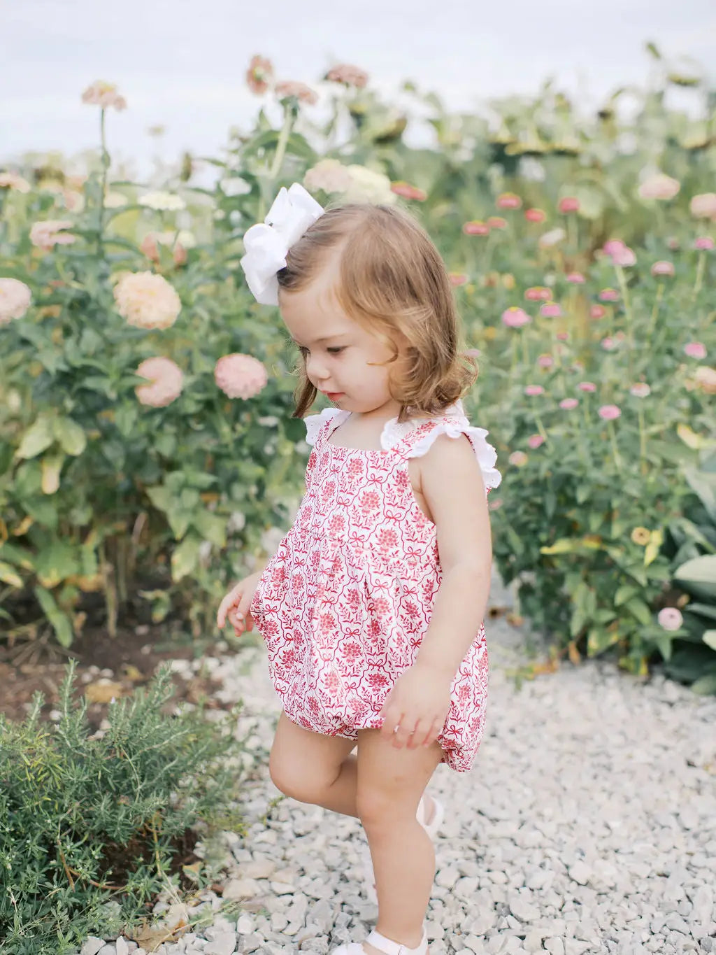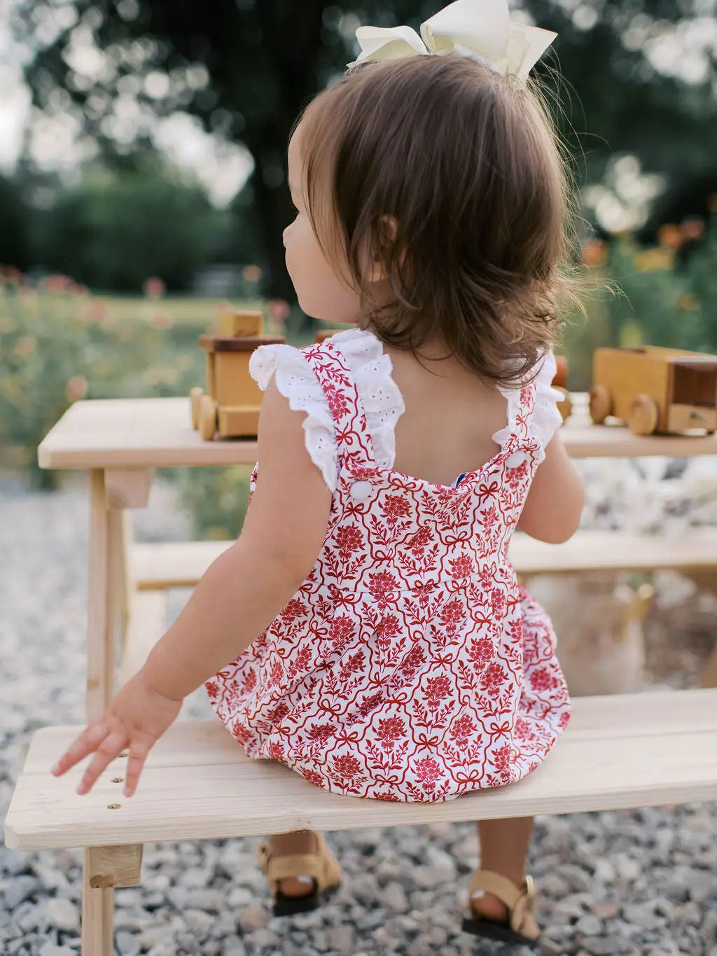 The Faye Bubble is a charming outfit designed with comfort and cuteness in mind. Made from a soft, breathable knit fabric, it’s gentle on the skin and perfect for all-day wear, whether your little one is playing, napping, or tagging along on errands. The standout feature of the Faye Bubble is its vibrant red floral bow print, which adds a pop of color and a playful, feminine touch to the overall design. A delicate lace ruffle adorns the shoulder straps, enhancing the outfit’s sweet, classic look.