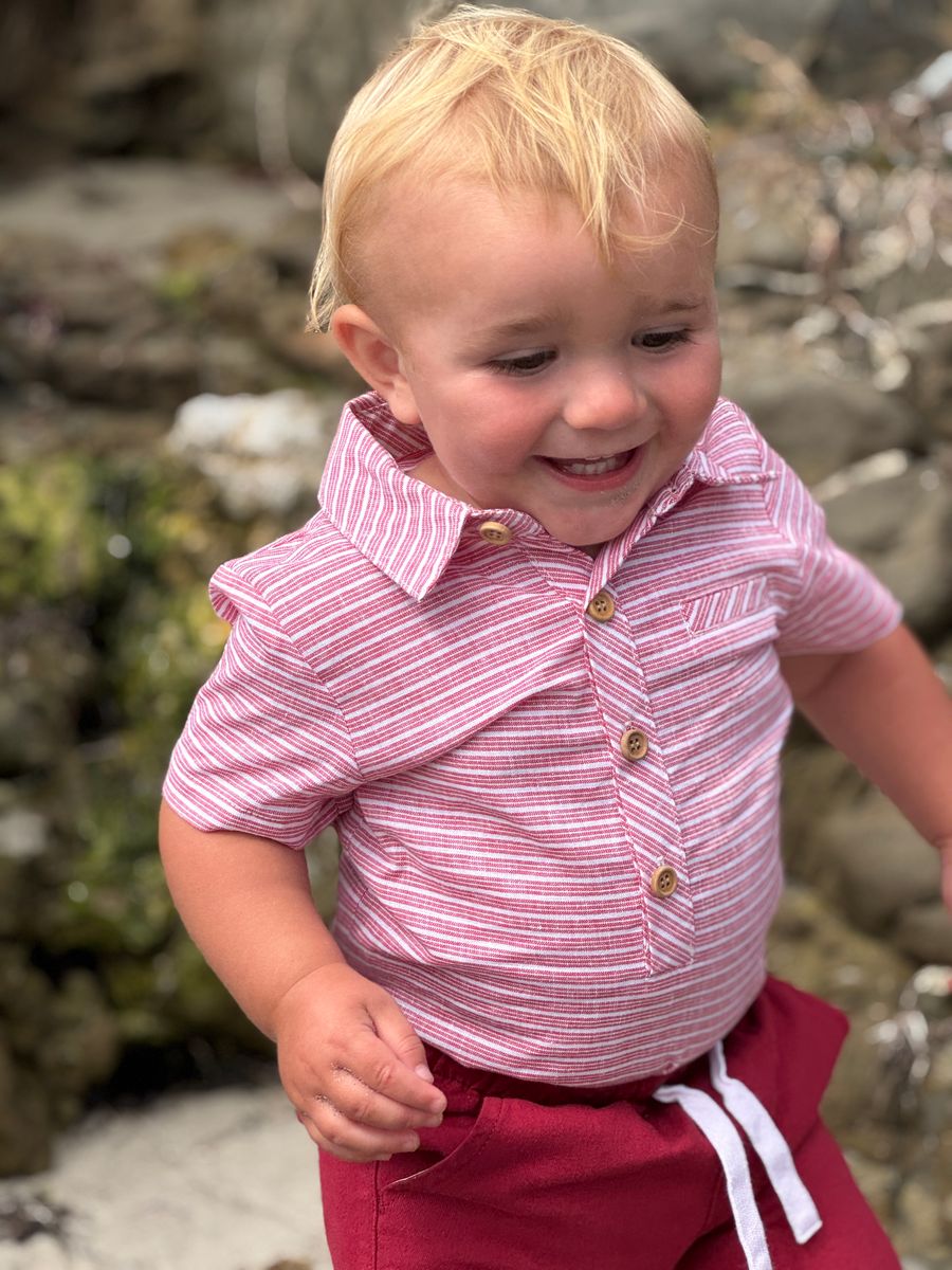 Helford Woven Onesie - Red Stripe