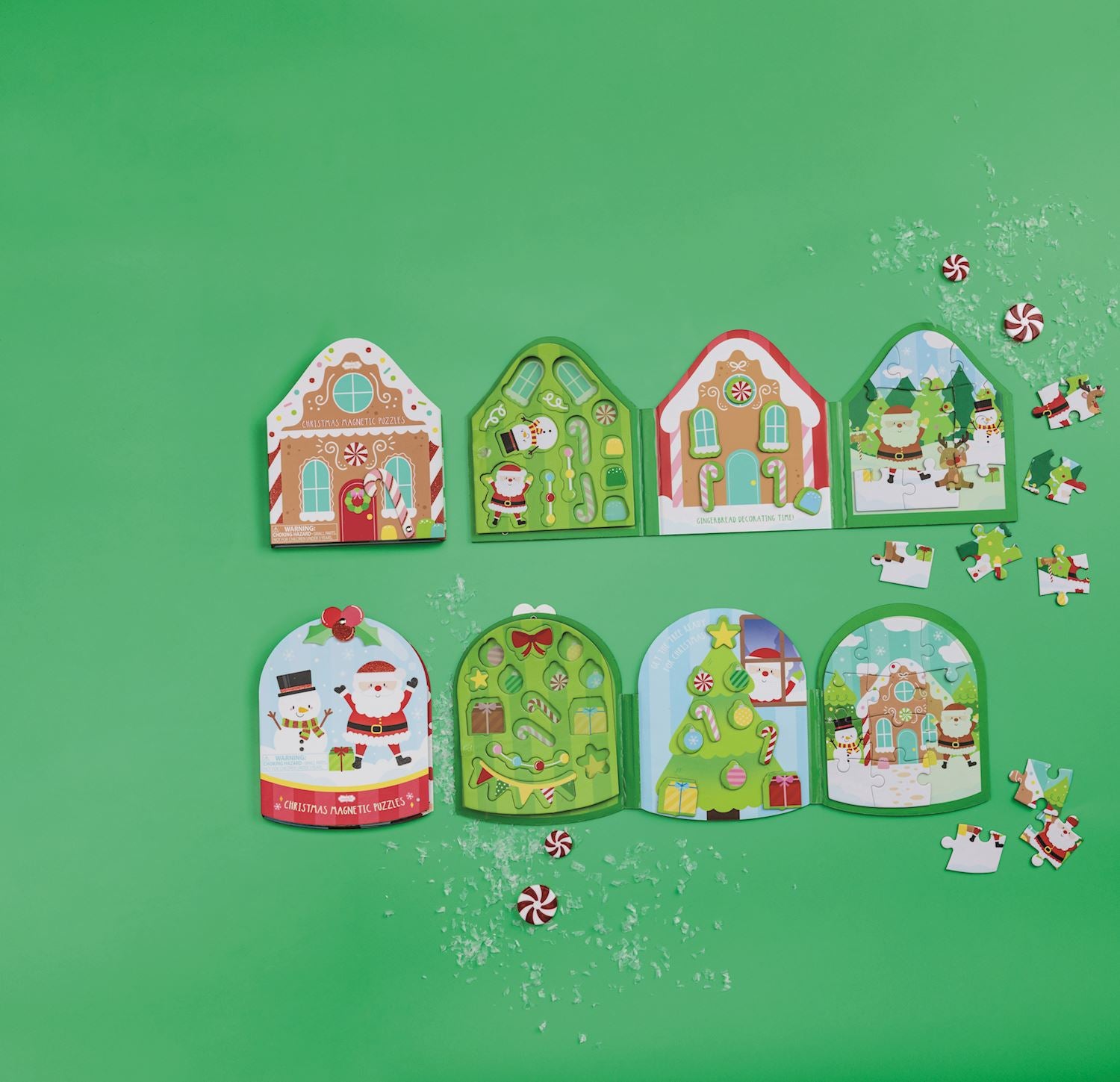 Magnetic puzzle and decorative play scene with magnet pieces stay together when on-the-go. Great for traveling! Ages 3+.